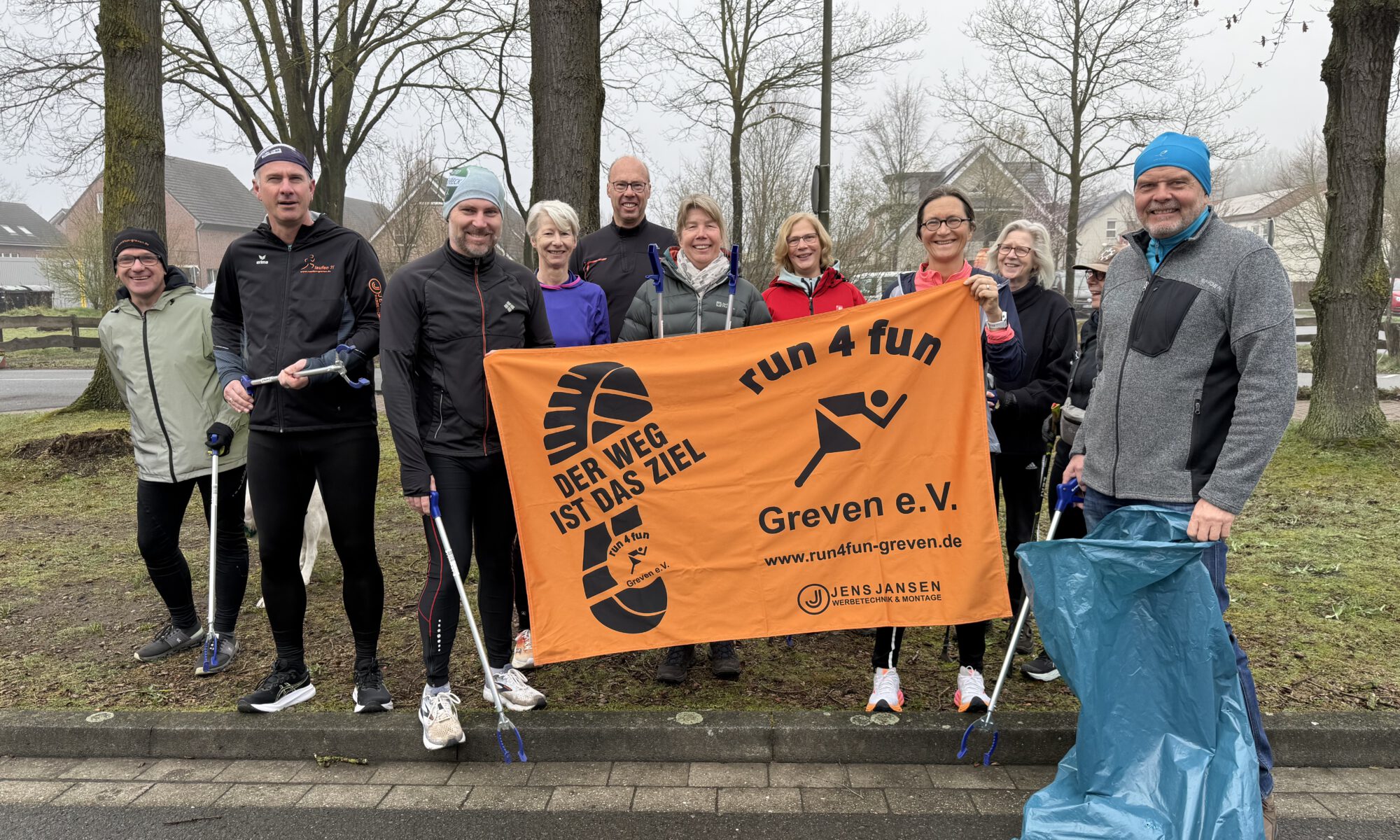 Statt des üblichen Sonntagstrainings beteiligten sich die Mitglieder des Run4Fun-Teams am Sonntag, 15.03.2026, um 10 Uhr an der städtischen Aktion „Greven putzt sich raus!“. Gemeinsam sammelten sie Müll und leisteten so einen Beitrag für eine saubere Umwelt und ein gepflegtes Stadtbild.